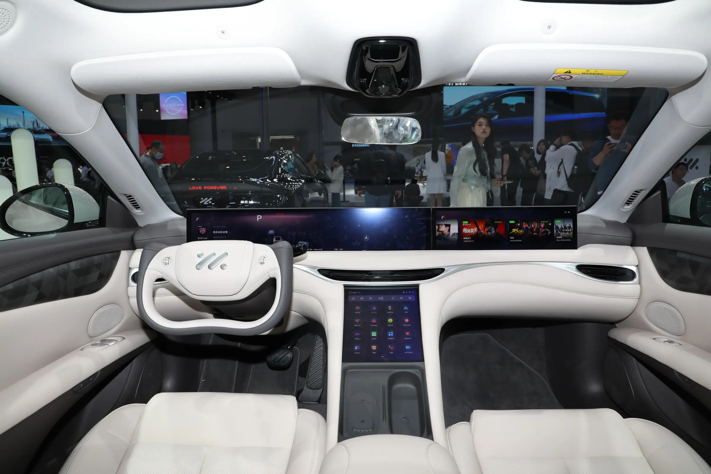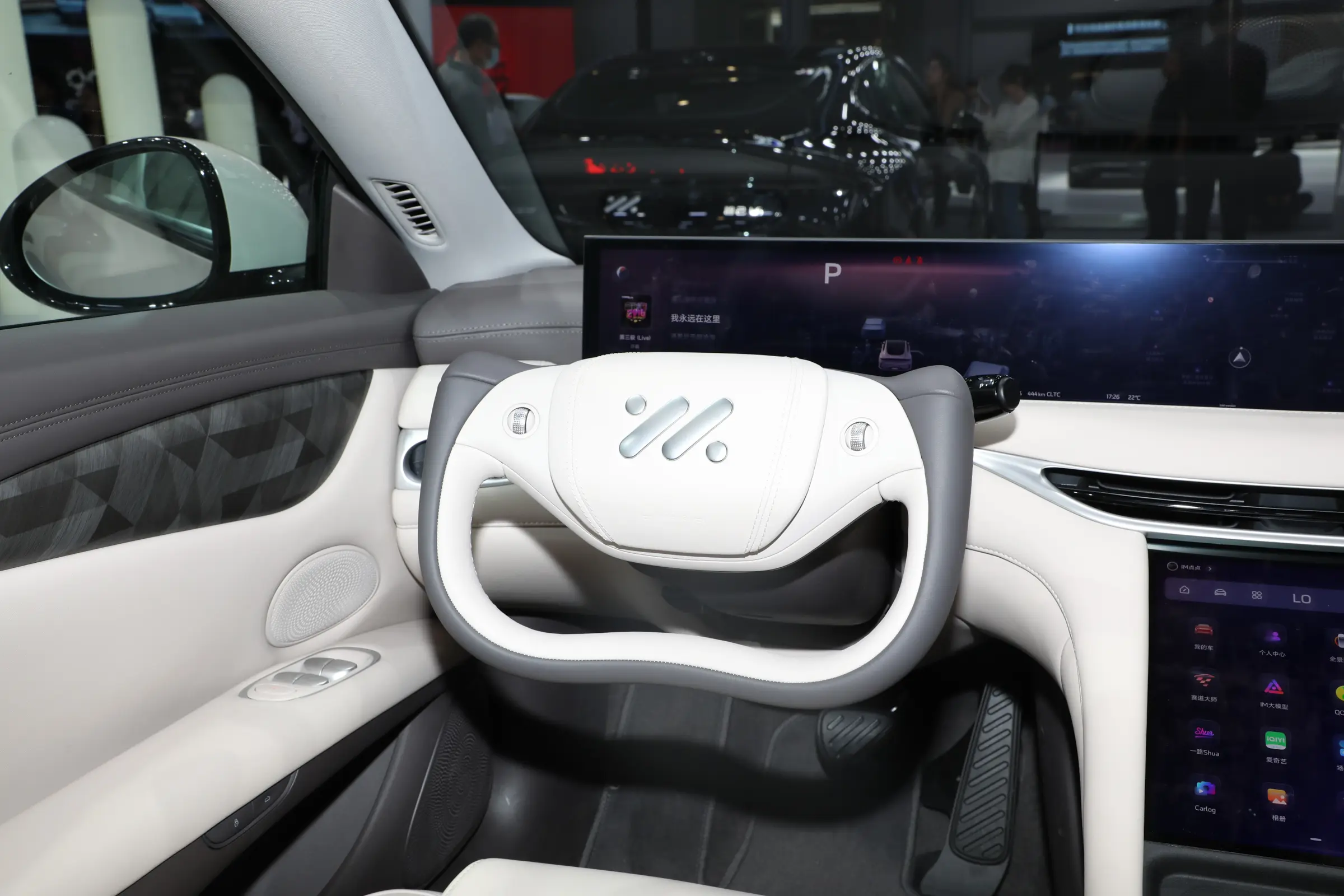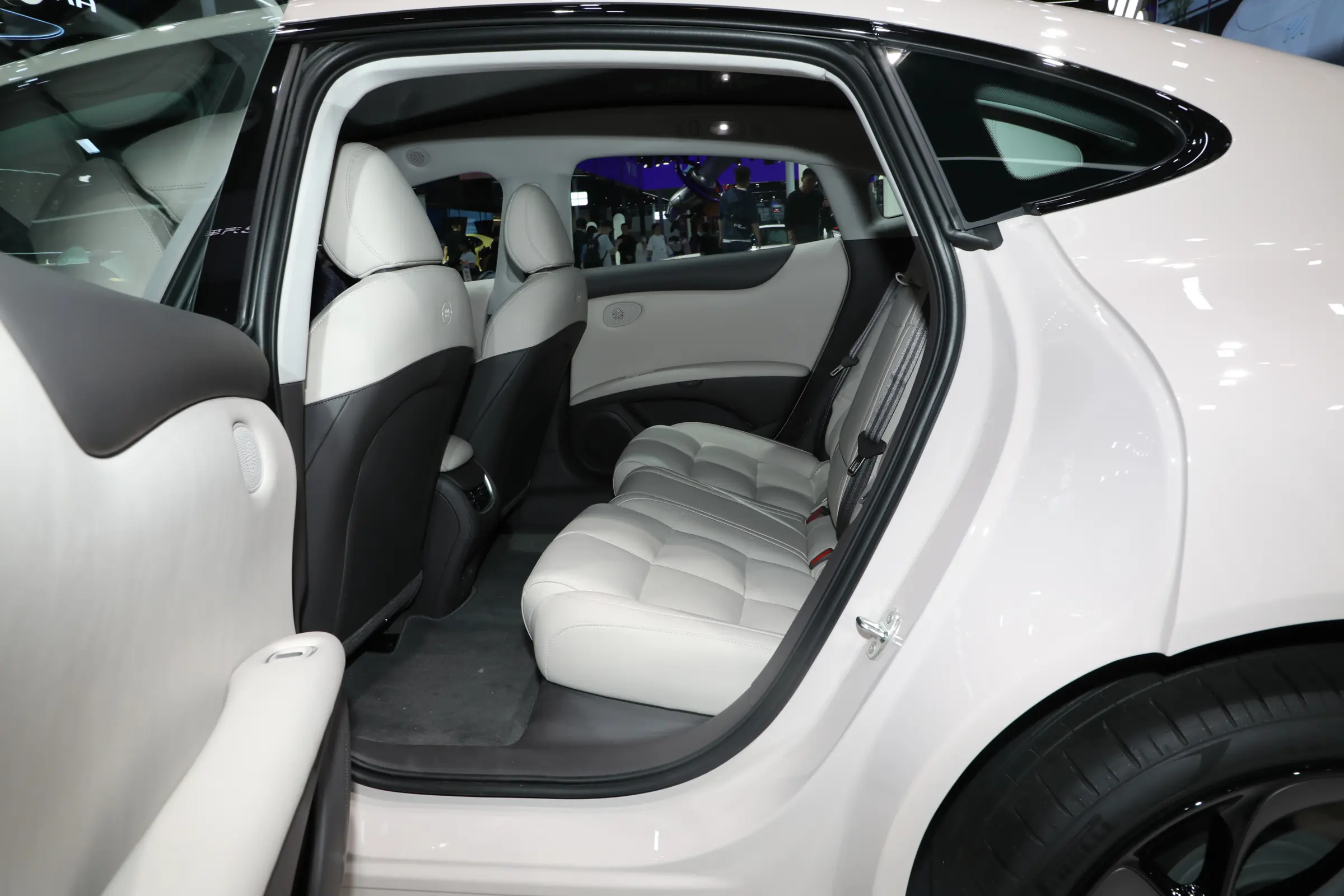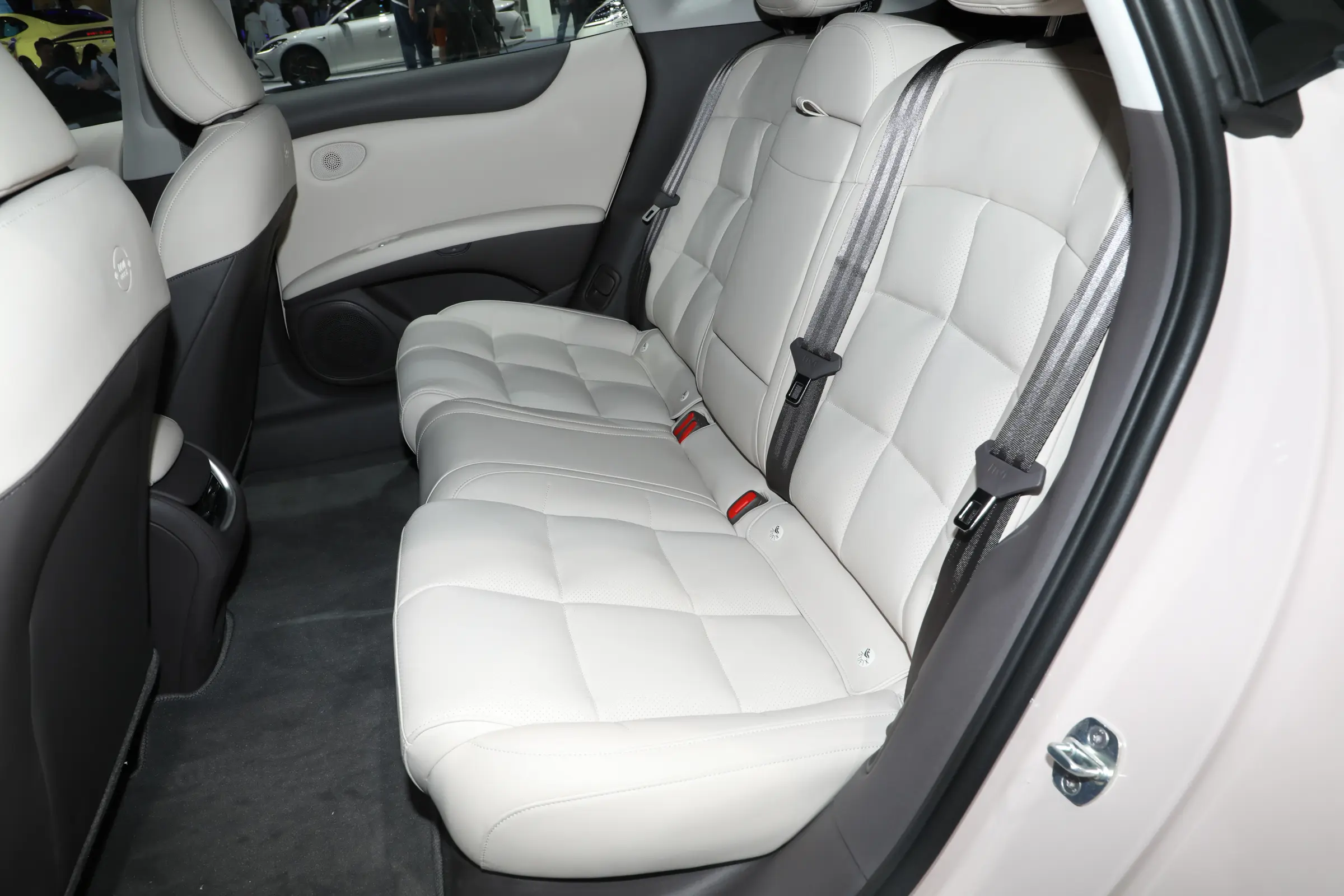 The seats of the new car are wrapped in leather, and there are magnetic points behind the front seats, which can be equipped with expansion hardware such as makeup mirrors and reading lights. The car’s audio system comes standard with 20 speakers, has 4 overhead speakers and a subwoofer, supports a 7.1.4 multi-channel audio system, and has a cabin active noise reduction function.