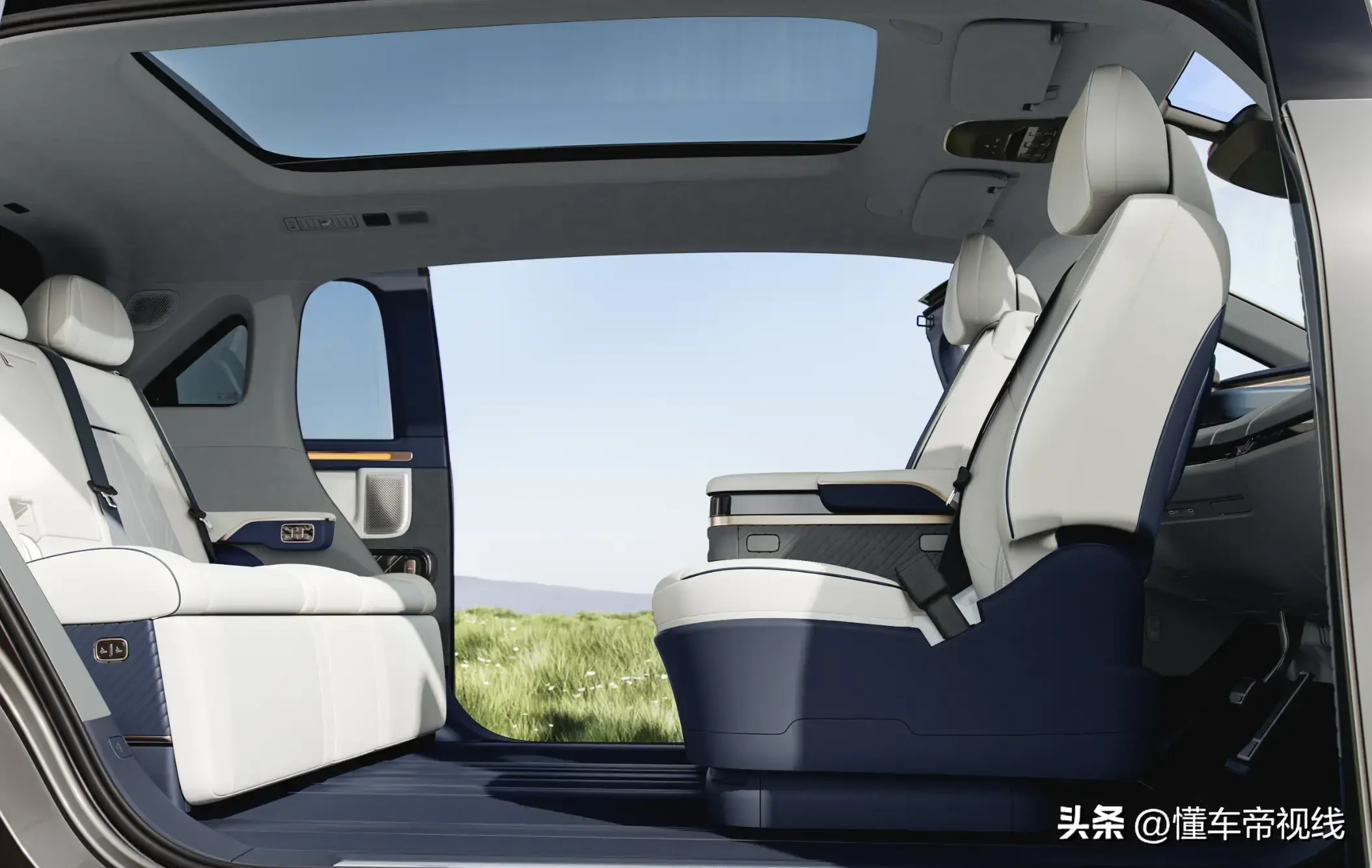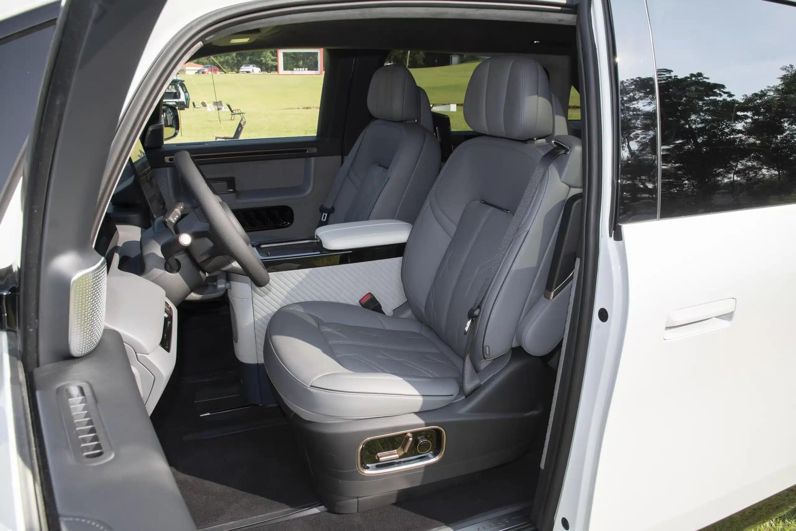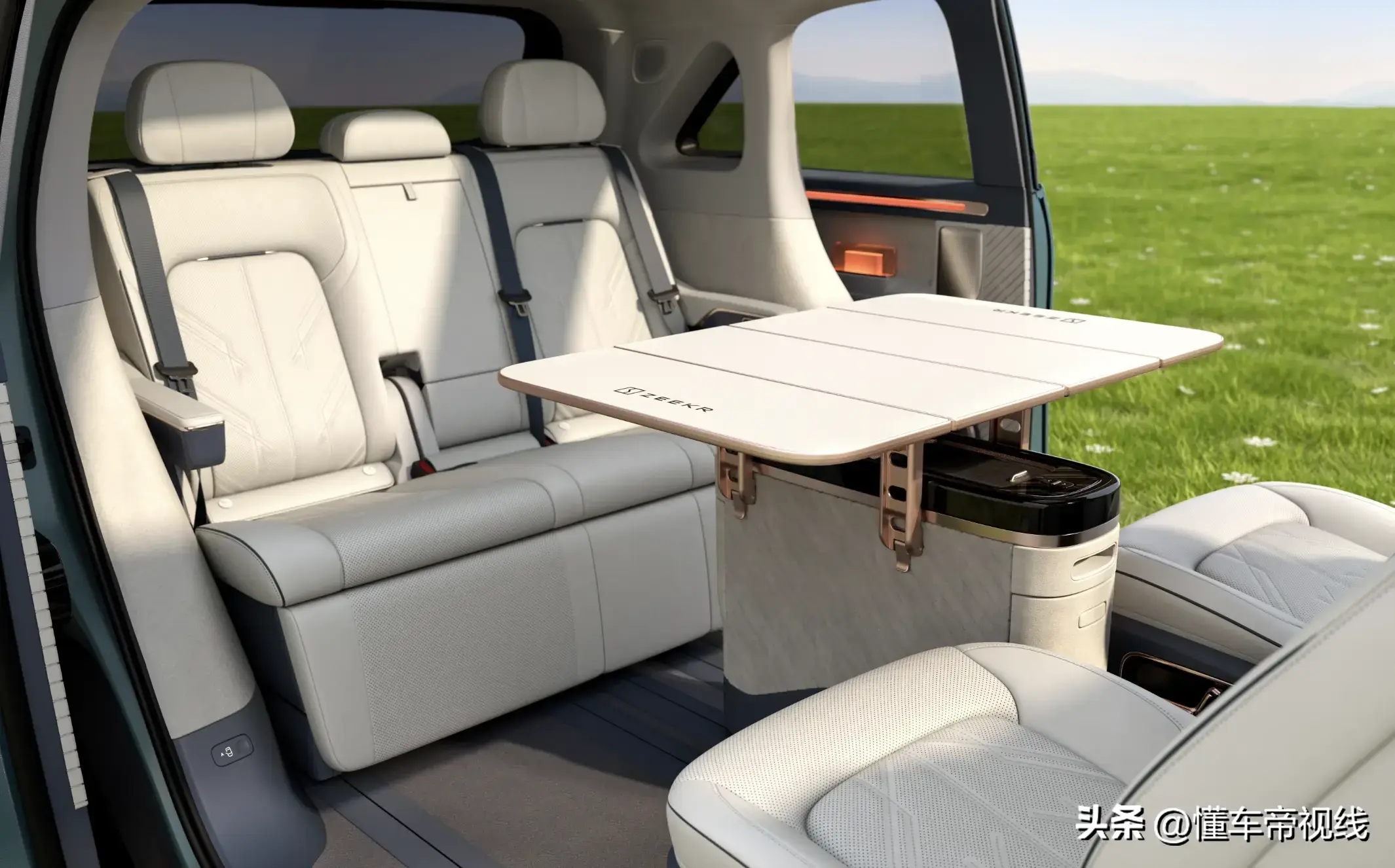 Zeekr MIX offers two interior styles: blue and white and black and gray. The ceiling is covered with pure Microfiber velvet, and Nappa full-grain leather seats are standard. The entire series has a 5-seat layout. The biggest highlight of the front seats is that they support 270-degree stepless electric rotation, and are also equipped with 12-way driver’s seat and 10-way passenger’s seat electric adjustment, memory, heating, ventilation, and massage functions.